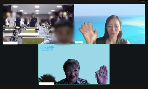 今年で3年連続、3回目となる井本直歩子さんのユニセフオンライン授業で、内容も年々レベルアップされたものになりました。 事前に、気候変動が発展途上国の教育や飢餓、世界的な農業に与える影響について調べるよう宿題が出されました。
