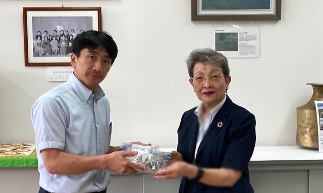 | ■ | チャレンジショップの社長さんから募金を預かりました とき 2023年3月10日(金)10:3~-ところ 福岡教育大学附属久留米小学校職員室 |