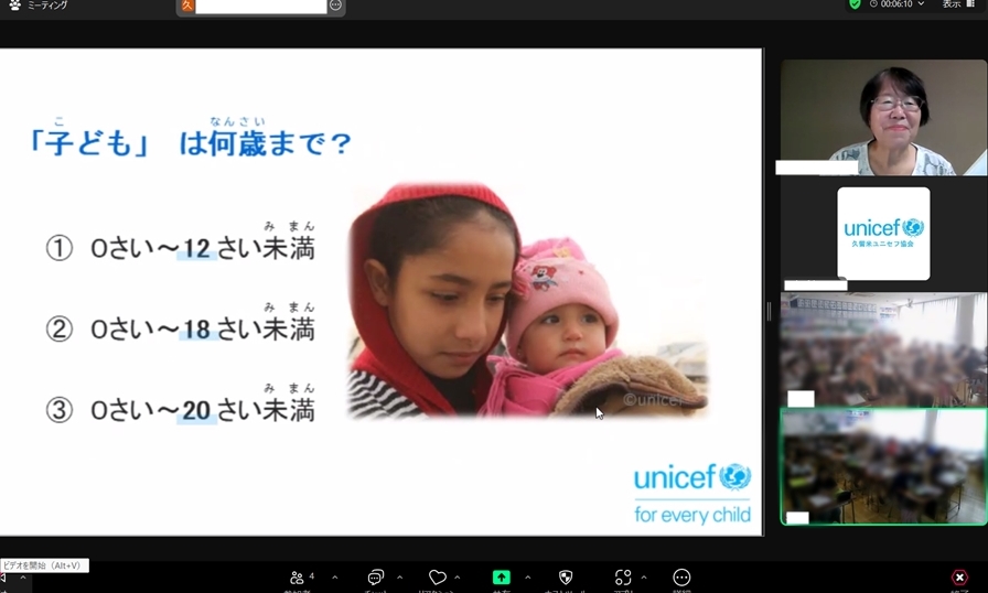 オンラインユニセフ学習会 と き 2025年9月29日 (月) 10:25~11:10 |