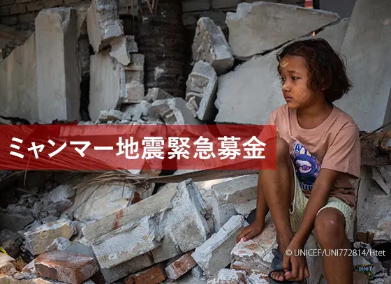 | ■困難に直⾯している数百万⼈の⼦どもとその家族を救うため、ミャンマー地震緊急募金ご支援をよろしくお願いいたします。 ■チラシはこちらからご覧いただけます。 *郵便局(ゆうちょ銀行) 振替口座:00190-5-31000 口座名義:公益財団法人 日本ユニセフ協会 *通信欄に「ミャンマー地震、K1-402」と明記願います。 *窓口での振り込みの場合は、送金手数料が免除されます。 |