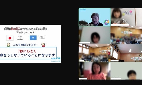 | ■ | うきは市吉井町江南の学童保育30名の皆さんとオンラインユニセフ教室を行いました。 とき 2023年12月26日(火)14:00~14:40 |