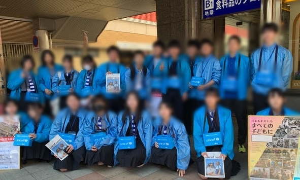 | ■ | 日本ユニセフ協会展示室での感銘を文化祭で再び! とき 2023年10月23日ところ 久留米ユニセフ協会事務所 本年1月、修学旅行で日本ユニセフ協会を訪問し、ガイドさんの話に深い感銘を受け、秋の文化祭でユニセフ募金活動をしてくださいました。 |