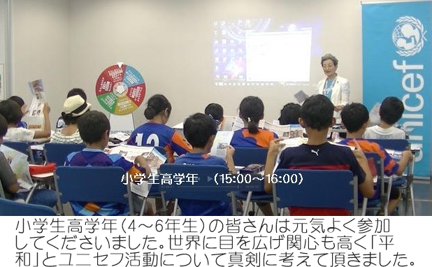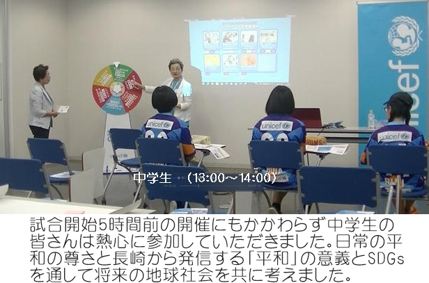 ユニセフブースに寄せられたファンの皆様の想い、出前授業に参加していただいた小・中学生の皆さんの想い、選手やクラブの皆様の想い、全てが一つになった「平和」への想いを体感した感激のイベント参加となりました。スタジアムの熱気とともに忘れられぬ一日となりました。有難うございました。 |