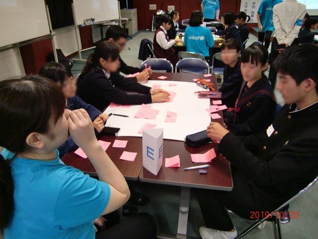 | ユニセフ学習会 日時:2019年12月13 日 場所:祐誠高等学校 毎年、お声をかけていただく祐誠高等学校に出前授業に伺いました。 |