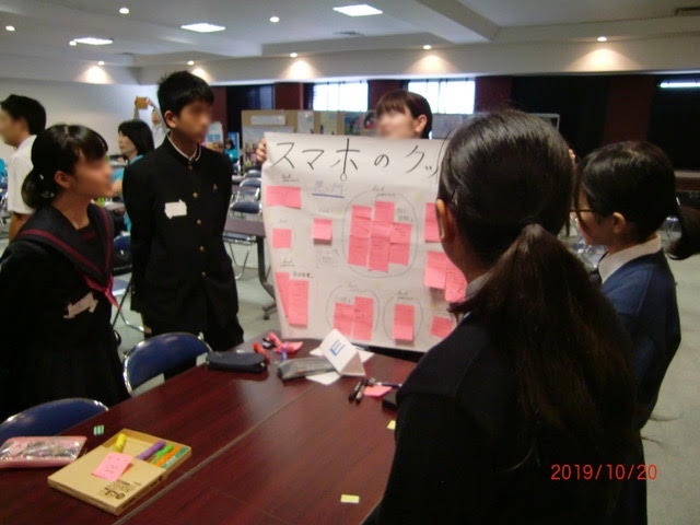 午後は午前中の発表をふまえ、大人も加わり、大谷美紀子氏も特別参加で、ネット依存対策を話し合ってもらいました。 家族や先生でもない、初めて接する大人と、中高生が胸襟を開き話し合えてよかったと皆さんに喜んでいただきました。